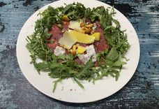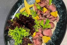 Салат с утиной грудкой и апельсинами в ежевичном соусе