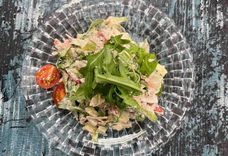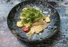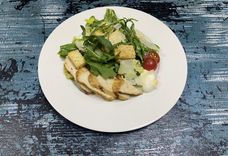 190/43 г • салат ромен, бекон, заправка Цезарь с анчоусами, пармезан, черри, яйцо перепелиное, крутоны